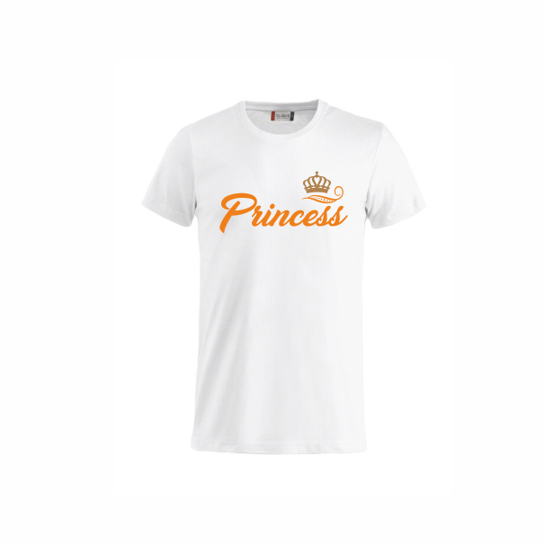 Laat je dochter shinen in dit Koningsdag t-shirt PRINCESS met kroon