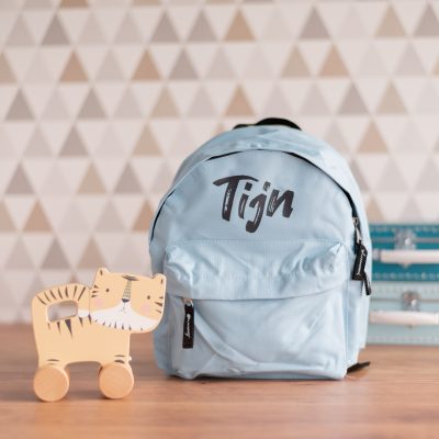 Ben je op zoek naar een rugtas voor een peuter? Dan is deze tas wat je zoekt. Met zijn afmetingen van 25x12x30cm is deze rugtas perfect voor het kleine lichaampje van een peuter of kleuter. Deze veelzijdige rugtas is te bestellen in zeven trendy kleuren waaronder zwart, camouflage, grijs, licht blauw, royal blauw, donker blauw en fuchsia roze. De tas wordt voorzien van de naam van je peuter of kleuter in een bijpassende kleur. Deze rugtas is speciaal gemaakt voor de peuters en kleuters. De tas heeft een groot vak met rits en een voorvak met rits. De rugbanden kun je gemakkelijk strakker en losser maken waardoor de tas goed op de rug van je kleintje past. In de tas is voldoende ruimte voor een beker, bakje en een schoon setje kleding. Deze tas is praktisch voor naar de opvang, naar school of naar de speeltuin. Deze gepersonaliseerde rugtas is super leuk om te geven als cadeautje voor een verjaardag of als kraamcadeau. Uiteraard kun je hem ook gewoon voor je eigen kindje bestellen!
