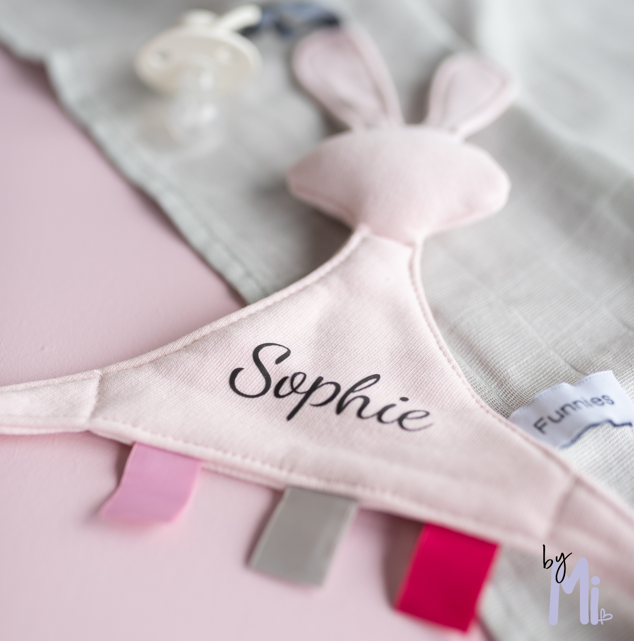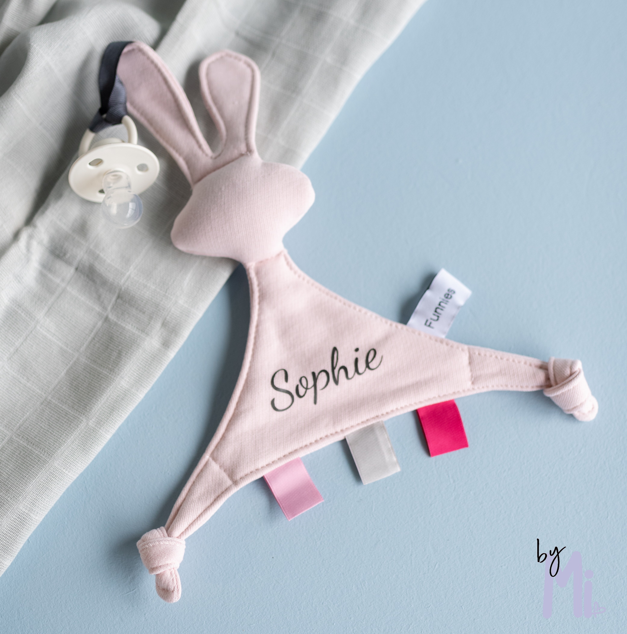 Lieve zachte tutkonijn blush met naam. Deze tutkonijn is voorzien van een lus om er een speen van je kindje aan te doen. De afmeting van de tutkonijn blush is 28×28 cm. De opdruk kleur is antraciet en de tutkonijn zelf heeft de kleur blush. Deze lieve tutkonijn is van het merk Funnies. De tutkonijn van het merk Funnies mag tot 40 graden in de wasmashine gewassen worden.